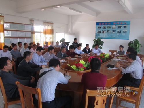 然后在学校行政会议室召开了座谈会,琴中黄象明副校长介绍了学校发展历史及书法课的开展情况;徐方海老师介绍了书法教学经验及练习书法的好处。五华硬协主席张中建老师介绍了“书法进校园活动”、书法教学师资培训等情况;最后,教育局李海祥副主任、美术教研员温请先对下一步全县中学开展写字教学作了细致的布置。