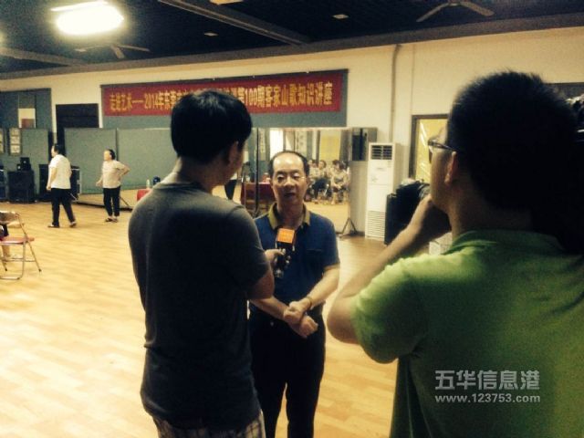 在接受当地电视台记者采访时,彭强老师说:“凤岗是东莞市的客家地区之一,山清水秀,人杰地灵,传统文化底蕴深厚,很多客家乡亲都有较深厚的山歌功底,加之多年来政府非常重视民族民间传统文化的弘扬和发展,先后与省委宣传部、省文化厅举办了多届全国六省、八省客家山歌邀请赛,近年来又举办“走进艺术-东莞市文化惠民百场培训”活动,为弘扬发展客家山歌起到了极大的推动作用,是我们各个客家地区学习的榜样,希望凤岗有更多一些年轻人学唱客家山歌,使我们的客家瑰宝进一步传承发展、经久不衰”。