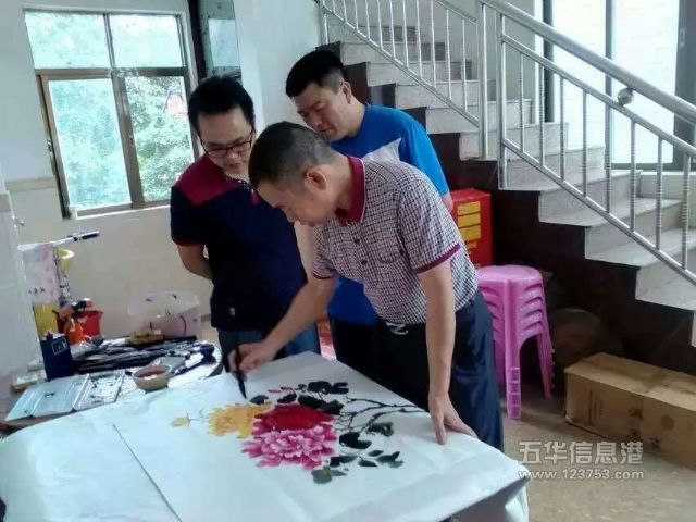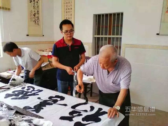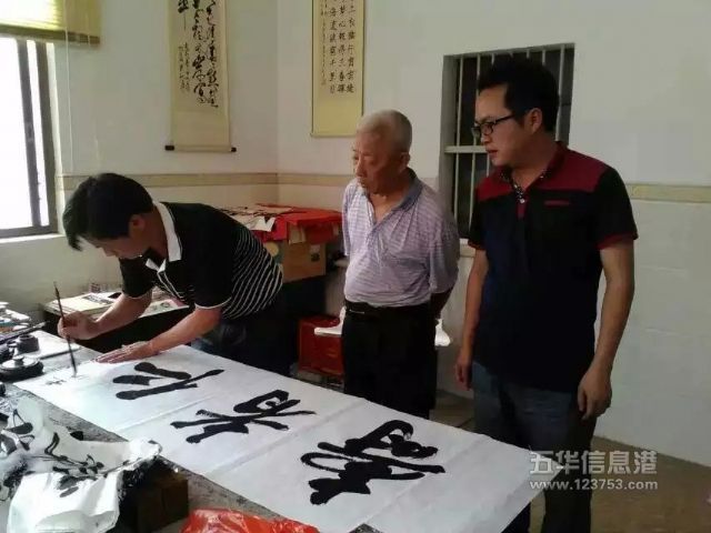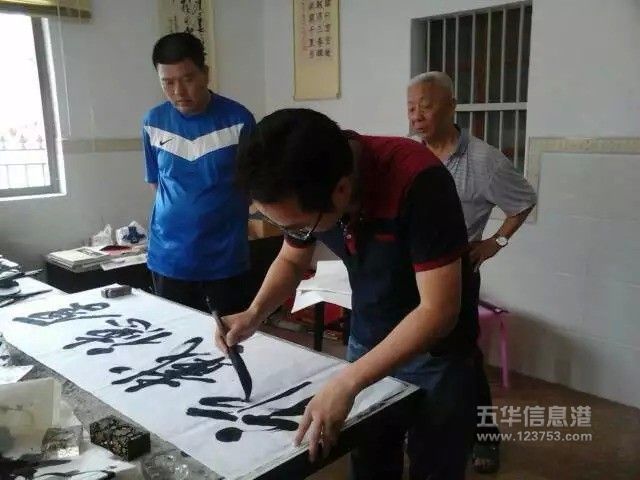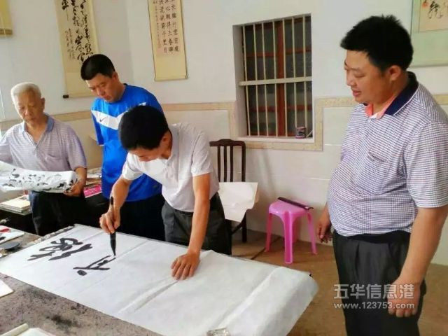 5月16日上午, 五华县知名书画家张中建、黄法权、钟育辉、徐方海、叶友双应邀在县城玉茶“三思轩”雅集,进行书画创作、交流活动。