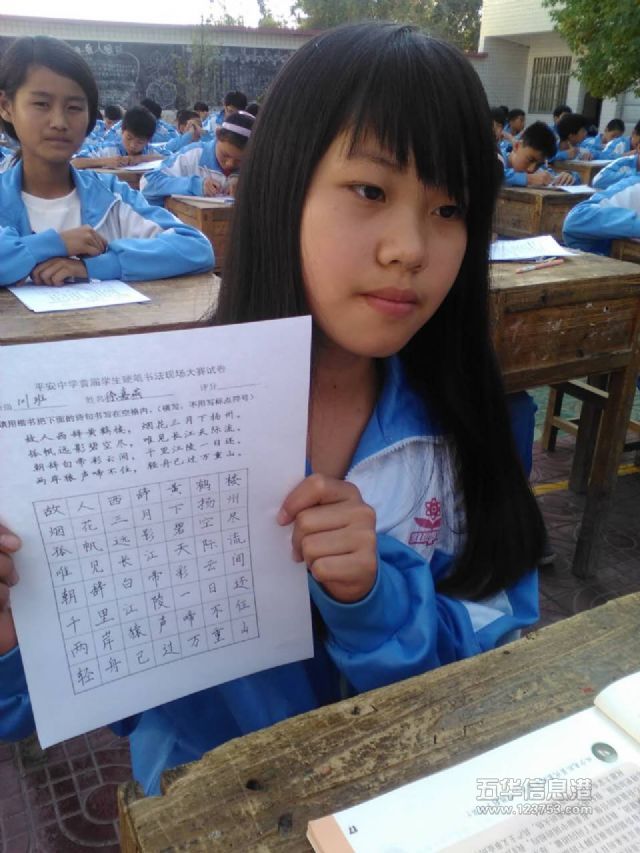 11月30日下午,“平安中学学生现场硬笔书法大赛”在五华县平安中学举行,500多名学生参加了比赛。比赛共评出一等奖8名,二等奖16名,三等奖20名。此次活动由五华县书法家协会组织专家担任大赛评委,并赞助了此次大赛的活动经费。(县书协)