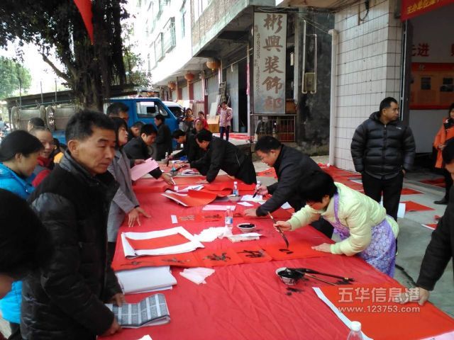 2月4日,张中建、徐方海、宋家祥、刘丽华、李剑波、刘海兴等6名省、市级书法家应潭下镇政府的邀请,为潭下镇群众挥春送福,一个上午就送出300多副春联。活动得到广大群众的称赞,认为潭下镇党委政府此举是为民所想,做实事,做好事。