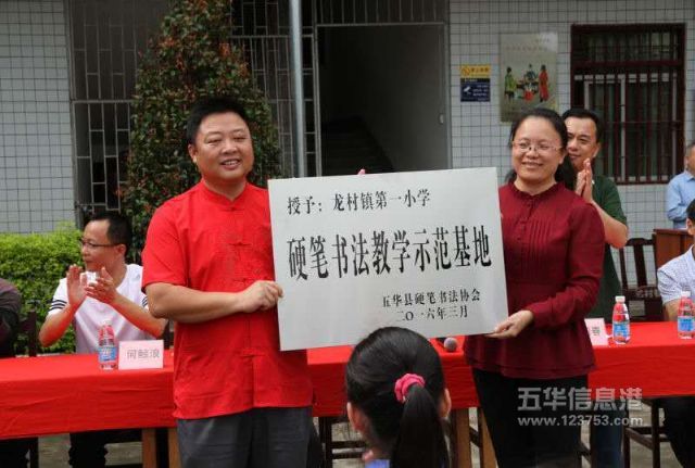 5月4日上午,五华县硬笔书法教学示范基地授牌仪式暨师生书法大赛在龙村镇第一小学举行。县硬协主席张中建,副主席徐方海,宋家祥,中心小学校长张国春,龙村一小刘翠绿校长,龙村书法分会会长刘振团及全镇各小学的师生代表共五百多人出席这次授牌仪式。随后,师生进行了现场书法比赛。