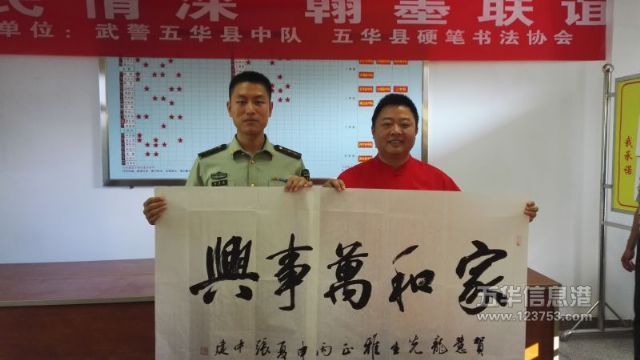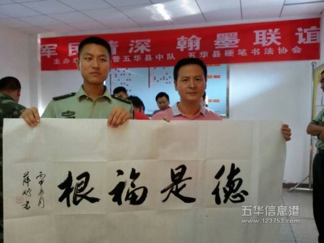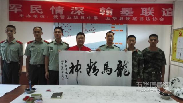 [五华县硬笔书法协会] 五华县书法家与武警战士翰墨香中欢庆八一