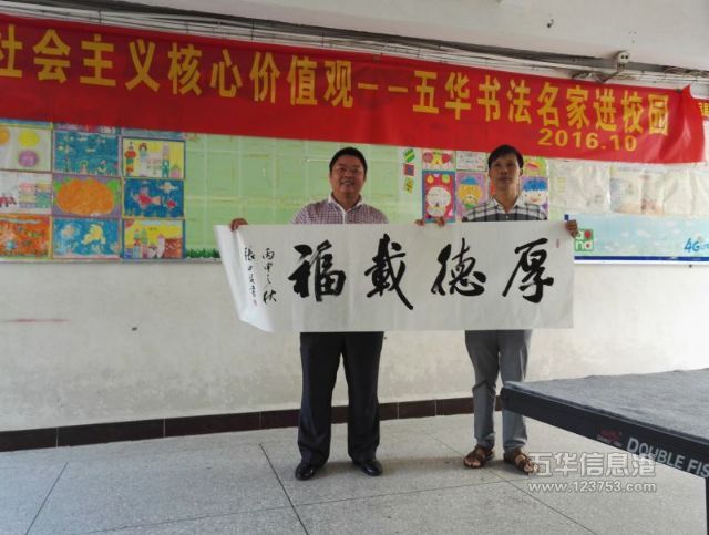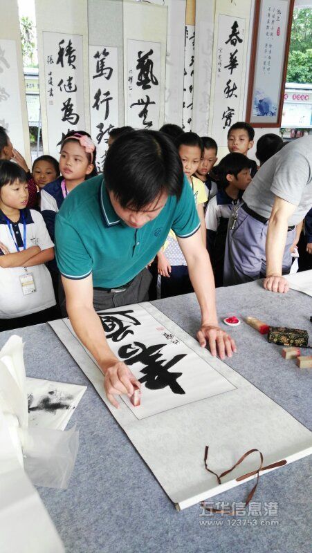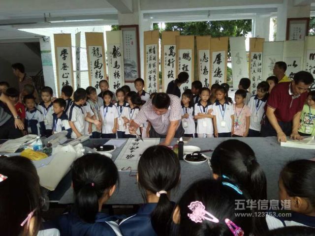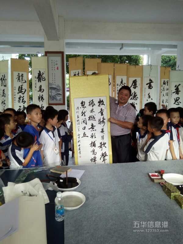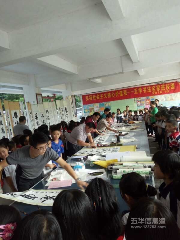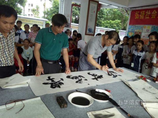 10月19日下午,弘扬社会主义核心价值观一一五华书法名家进校园活动在河东镇第一小学举行,黄法权、张中建、曾长文、徐方海、宋家祥、黄敬德六位书法家参加了活动,为学校师生赠送了70多幅书法作品。