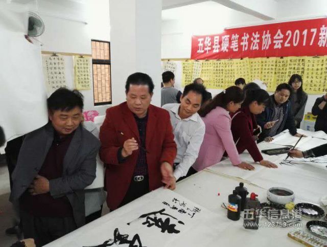 2月18日上午,五华县硬笔书法协会新春笔会在长乐书法院举行,来自全县各地的会员60多人参加了活动。市硬协张小冰主席、县委宣传部常务副部长谢意、县教育局李作华局长、县文广新局副局长彭强、县硬协顾问李旺盛先生等领导出席活动并现场挥毫。