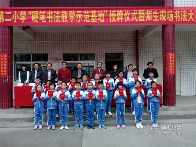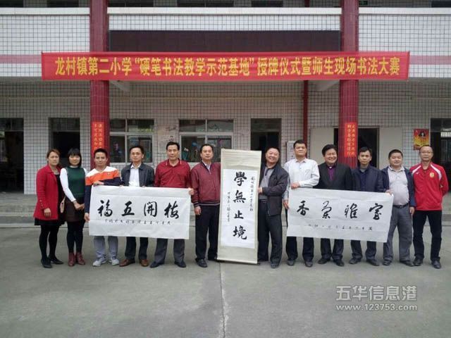 4月12日上午,五华县龙村镇第二小学硬笔书法教学示范基地授牌仪式在龙村镇第二小学举行。五华县硬笔书法协会主席张中建、副主席宋家祥、徐方海、理事李林娣,龙村镇中心小学校长张国春等领导出席了活动。