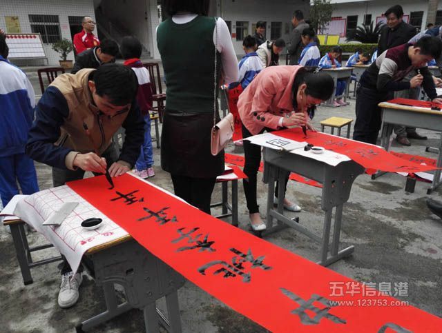 授牌仪式后,200多名师生进行了现场硬笔书法比赛及教师春联大赛。