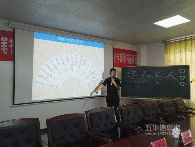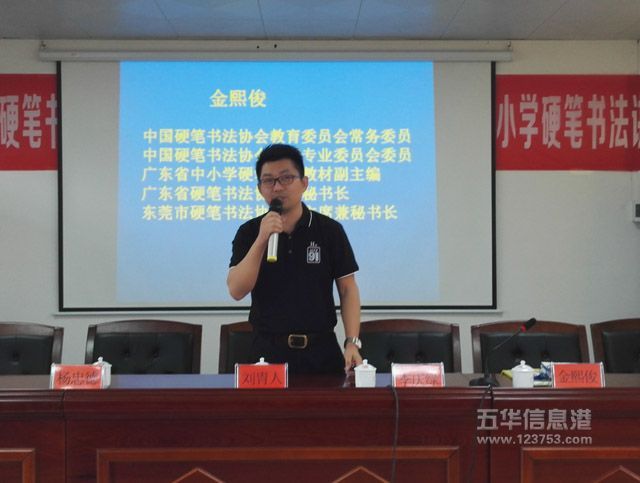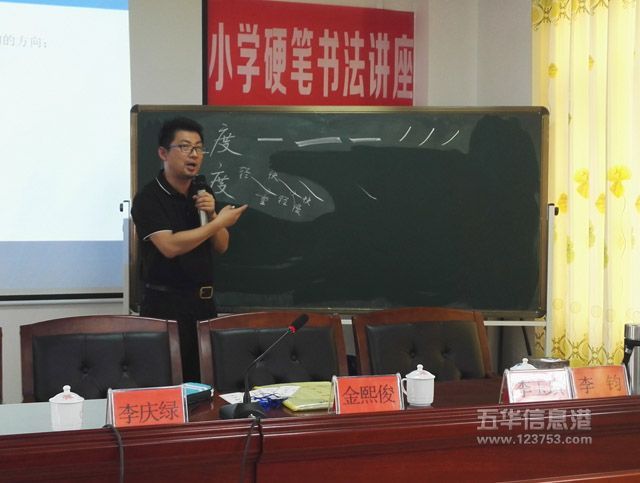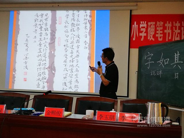 全国硬笔书法名家金熙俊老师应邀为100多名师生作了一场精彩的书法讲座,引经举典,生动有趣,赢得师生们的阵阵掌声。