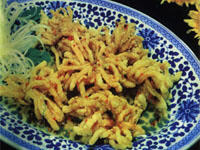 4、卤汁勾芡,淋于菊花鲈鱼上即成。