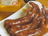 著名广州菜。广东人嗜食鸡爪,吃法颇多。但此菜烹调方法制作精细,先煮后炸再炖而成。成菜色泽金黄。
