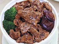 3、餐桌上置一碳炉,放上砂锅,下二汤、精盐、味精和酱料一碗,上盖,汤沸后,将牛肉片和生菜分批放入,边涮边食,食时蘸酱为佐。