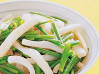 水发鱿鱼200克,青韭100克,料酒5克,盐3克,味精2克,胡椒粉1克,油适量。