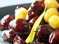 枣泥150克。 山药100克、青梅条20克,花生油50克、白糖20克、蜂蜜20克、桂花酱15克。