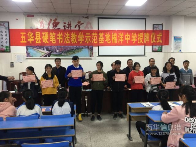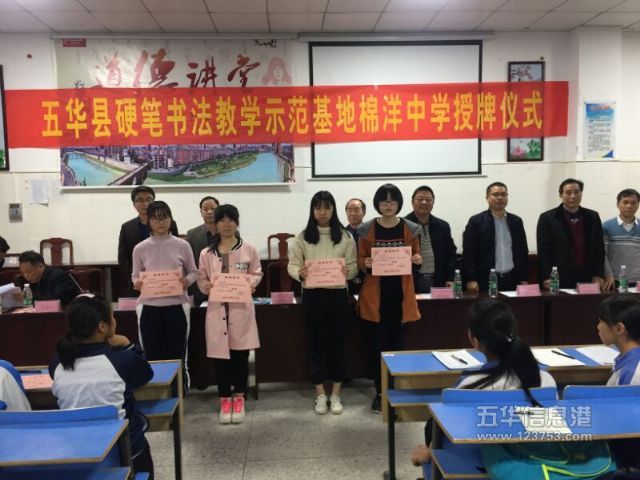 棉洋中学被授予“五华县硬笔书法示范基地”