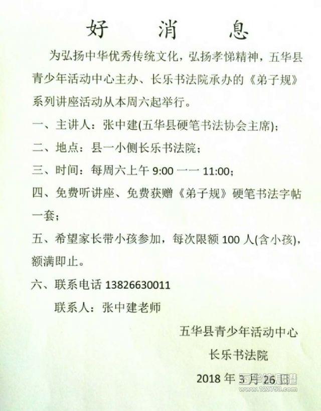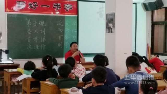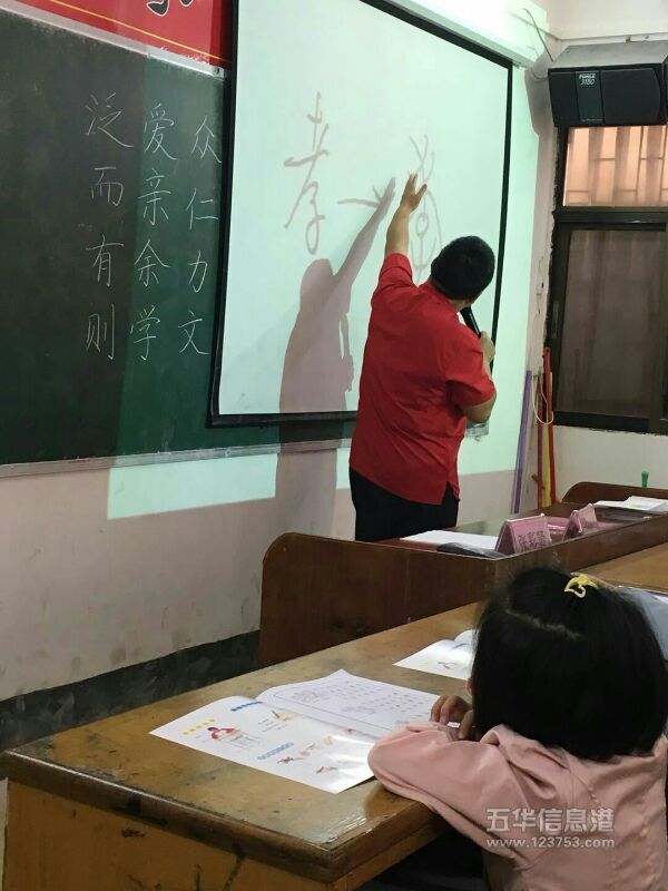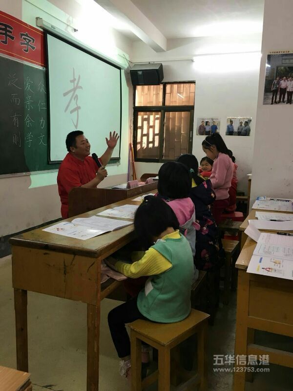 五华县硬笔书法协会主席应邀担任主讲教师,本次系列讲座活动分20课时,连续10个周六上午,免费向社会开放,并为听课的家长和学生赠送《弟子规》硬笔书法字帖。