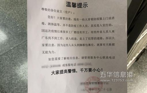 近日,广东深圳某小区贴出公告,称有不法分子冒充防疫人员入室抢劫。